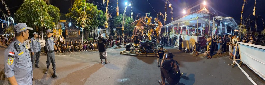 In the afternoon, the Nyepi hardcore of our group met for drinks before going to appreciate the Ogoh-ogoh festival. We added to the growing crowd at what is called the “McDonald’s Intersection, but that seemed to be mostly tourists and after an hour or so, we started asking the barely effective traffic police for more information.