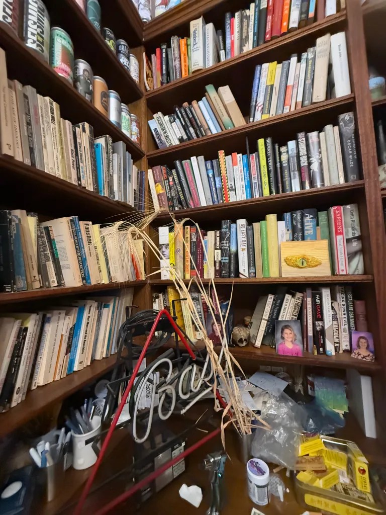 One day, Charlie and I drove to Alameda to return a drum set to his buddy AJ. Turns out he lives in a charming Victorian with a wonderful library and lots of cool furniture (his Dad – immigration lawyer & malt maker – must rock!). Then, we went to lunch at Homeroom, an all mac + cheese restaurant in Oakland started by a former HGM student, Erin Wade. Slammin’…